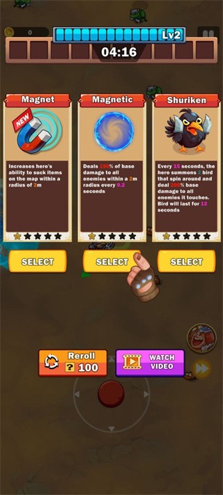 4、当玩家击杀到一定数量后,将可获得额外的辅助技能,三种不同类型的技能供玩家选择。